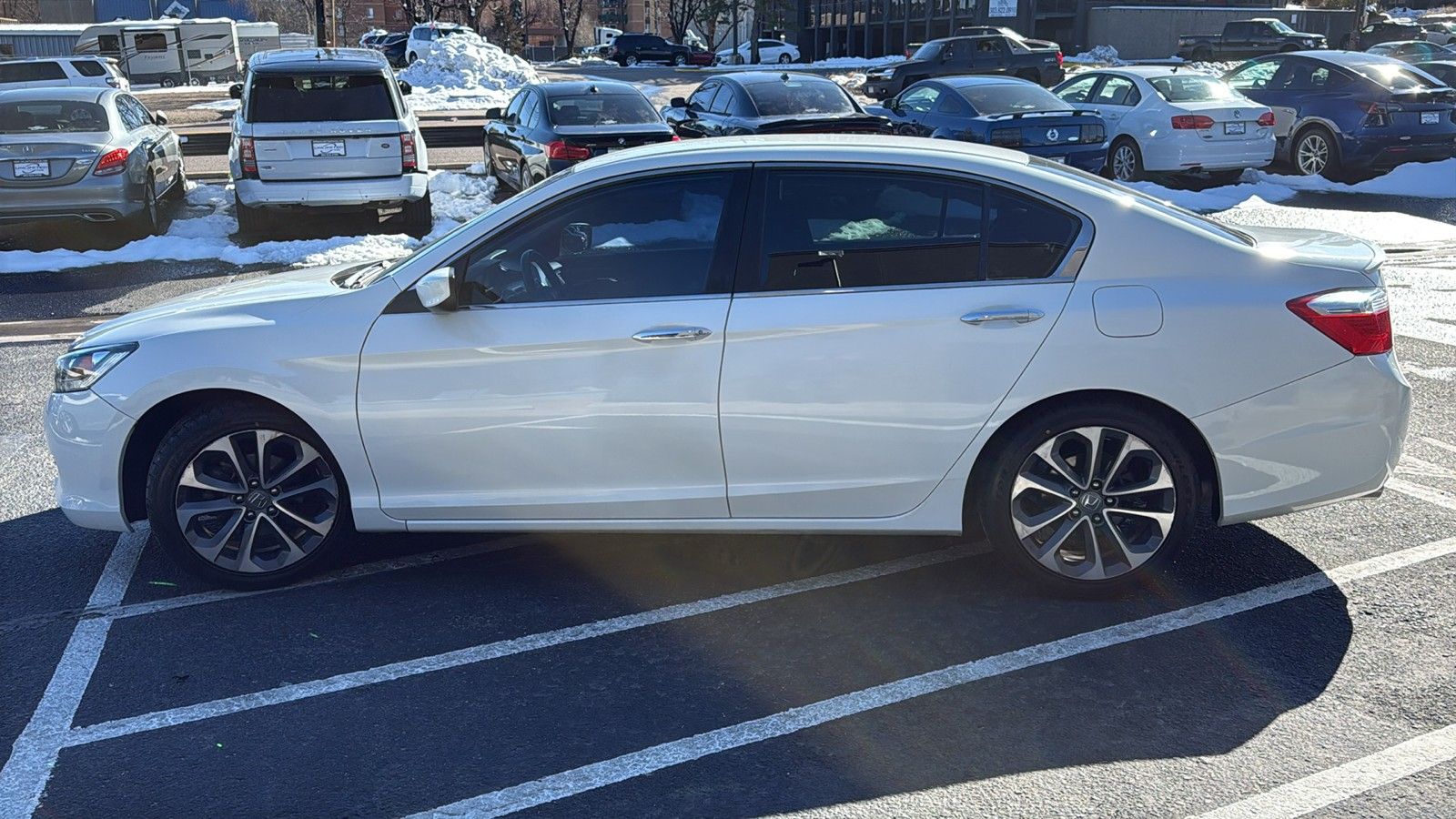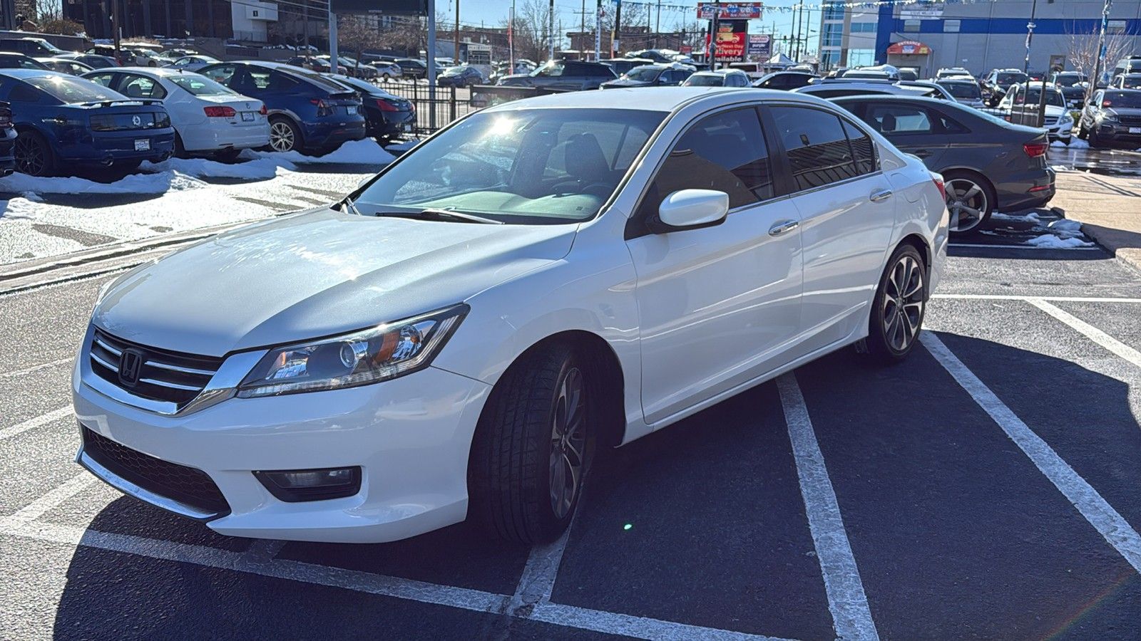 Experience the perfect blend of style, performance, and practicality with this 2015 Honda Accord Sport. Dressed in an elegant White Orchid Pearl exterior, this sedan is designed to turn heads while delivering a smooth and responsive drive. Under the hood lies a robust 2.4L I4 engine that produces an impressive 185 horsepower and 181 ft-lbs of torque, ensuring every journey is both powerful and efficient.
