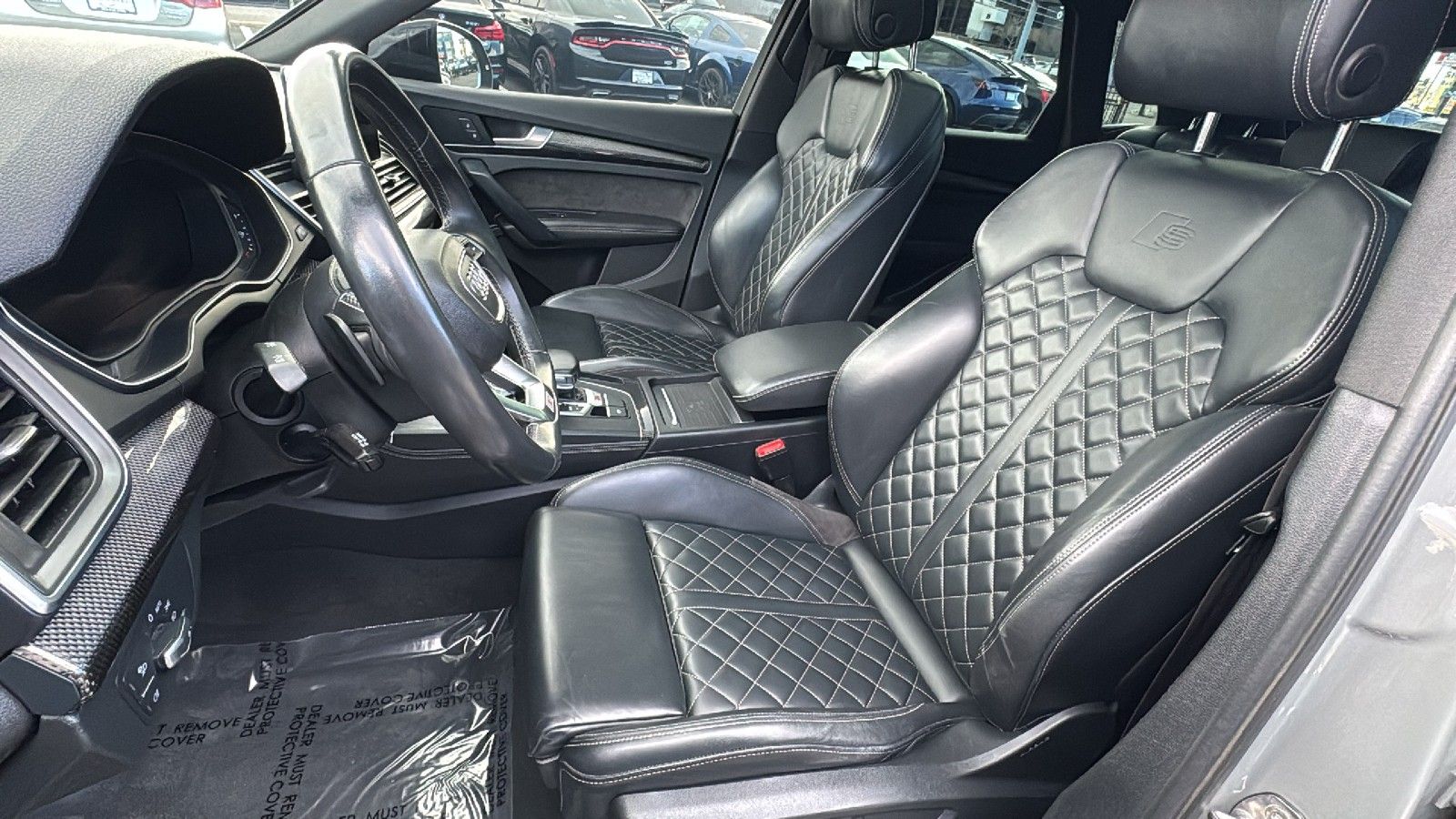 Front seatback upholstery: Plastic front seatback upholstery