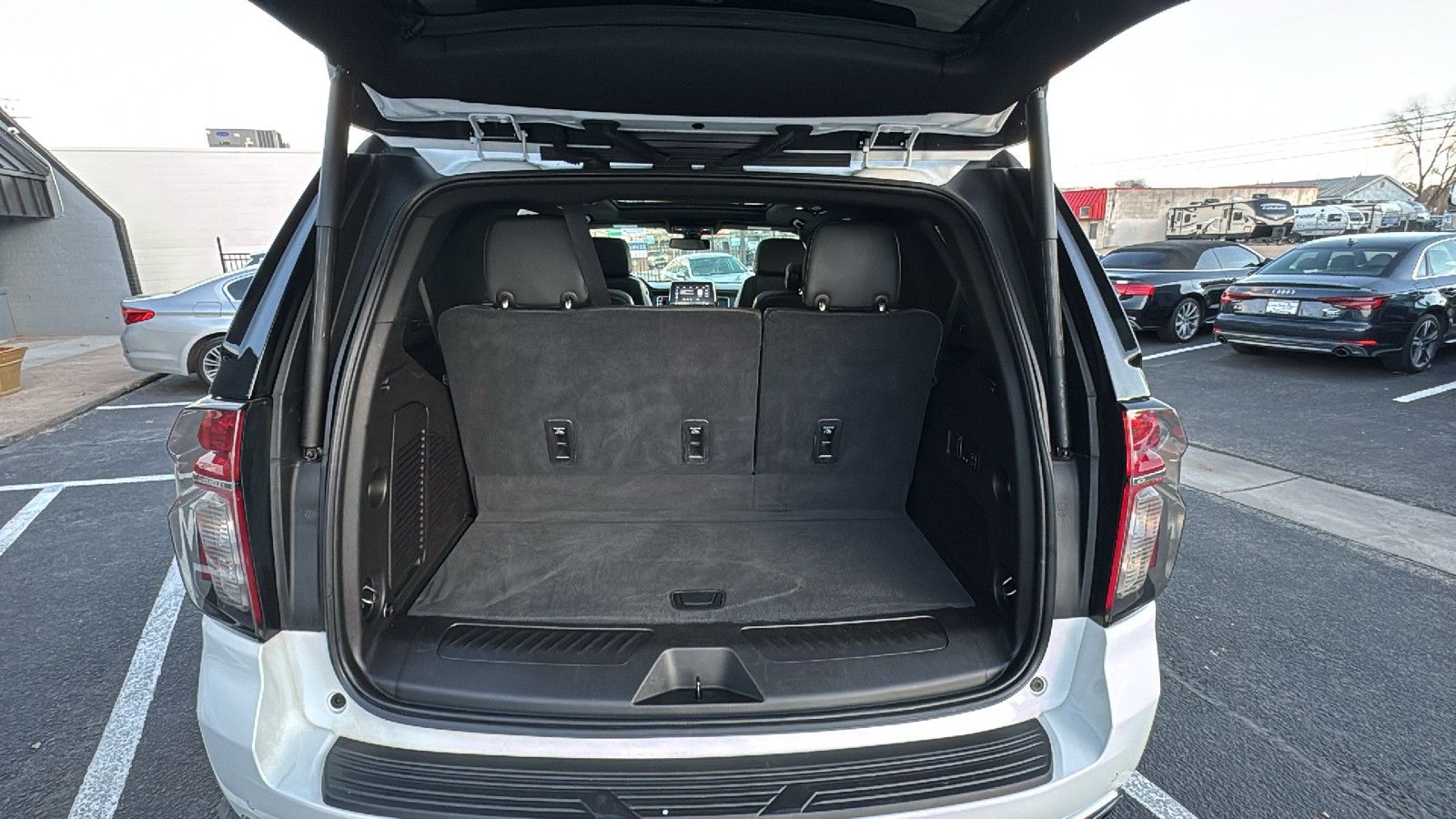 Third-row seatback upholstery: Carpet third-row seatback upholstery