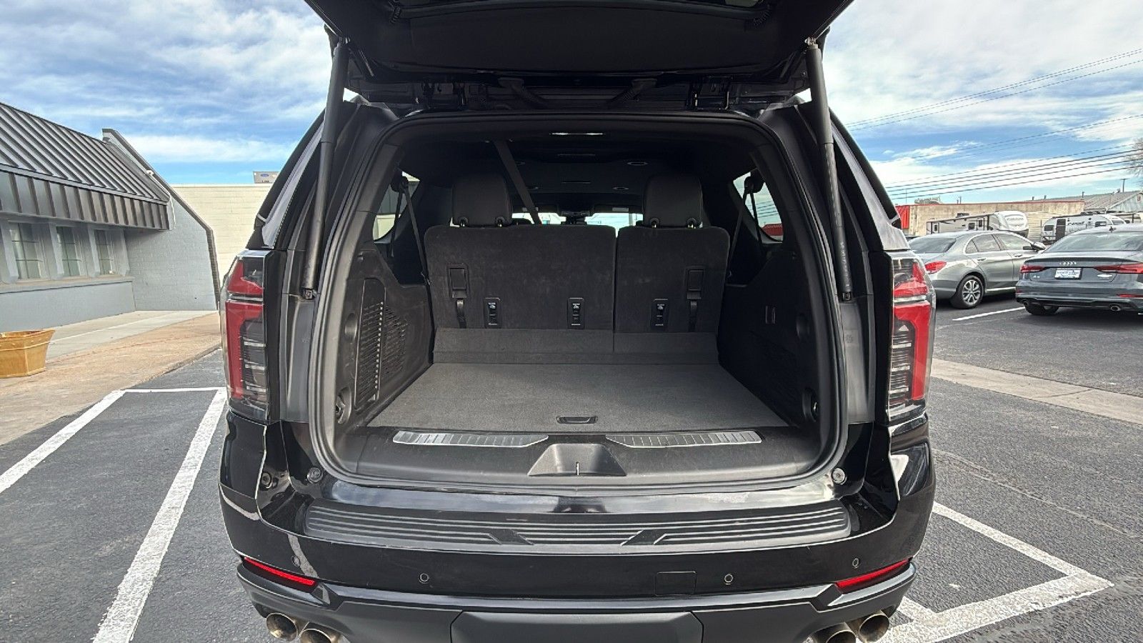 Third-row seatback upholstery: Carpet third-row seatback upholstery